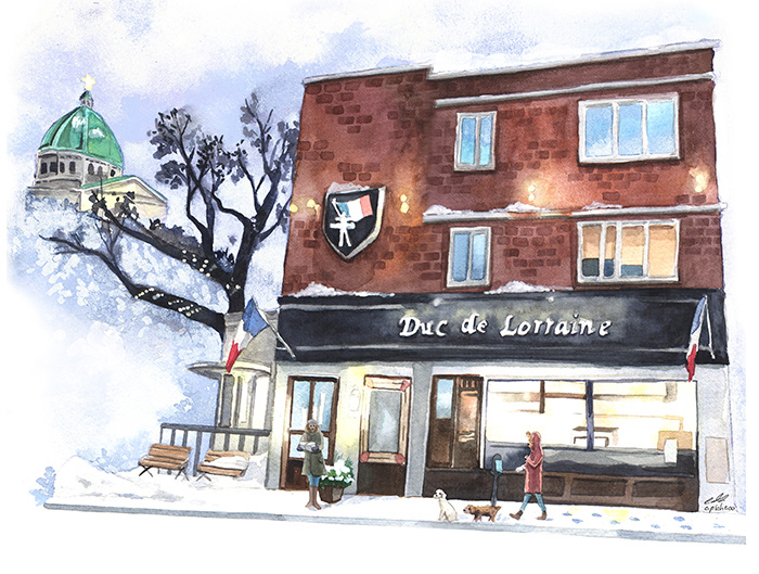 I did their store front in summer, winter and spring to illustrate their post card, fall is coming soon. :)