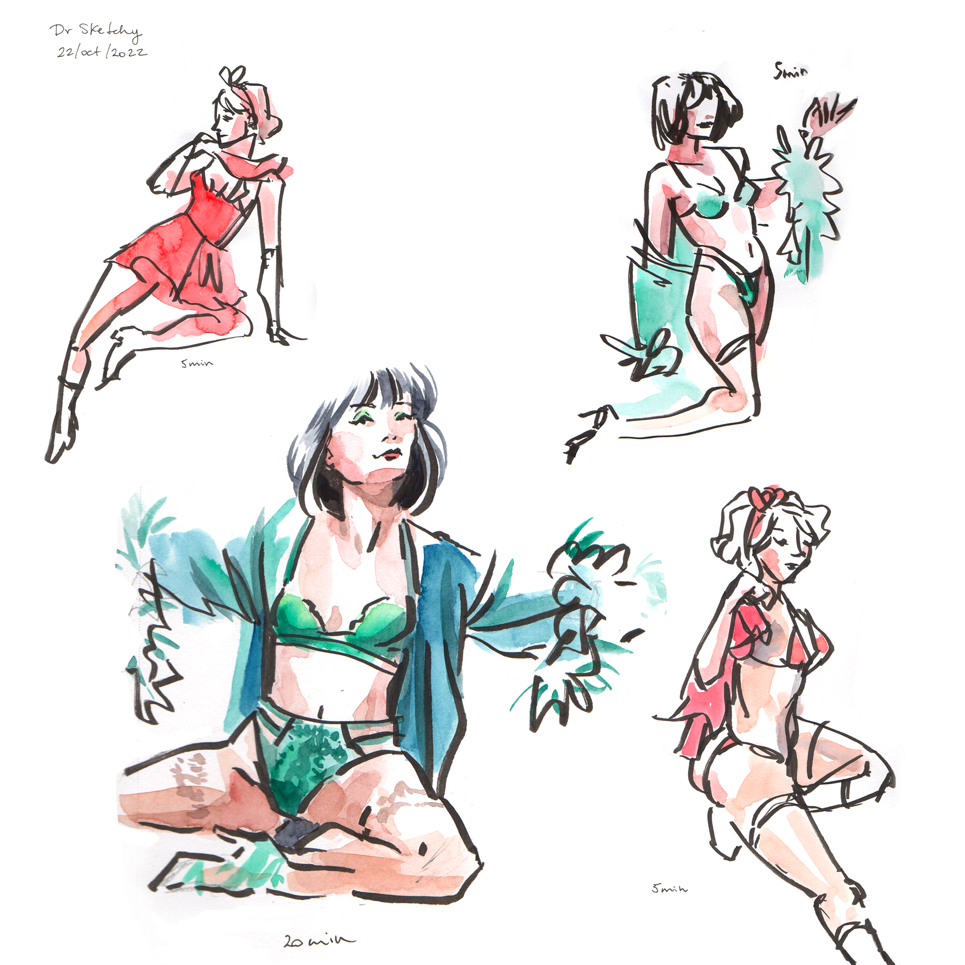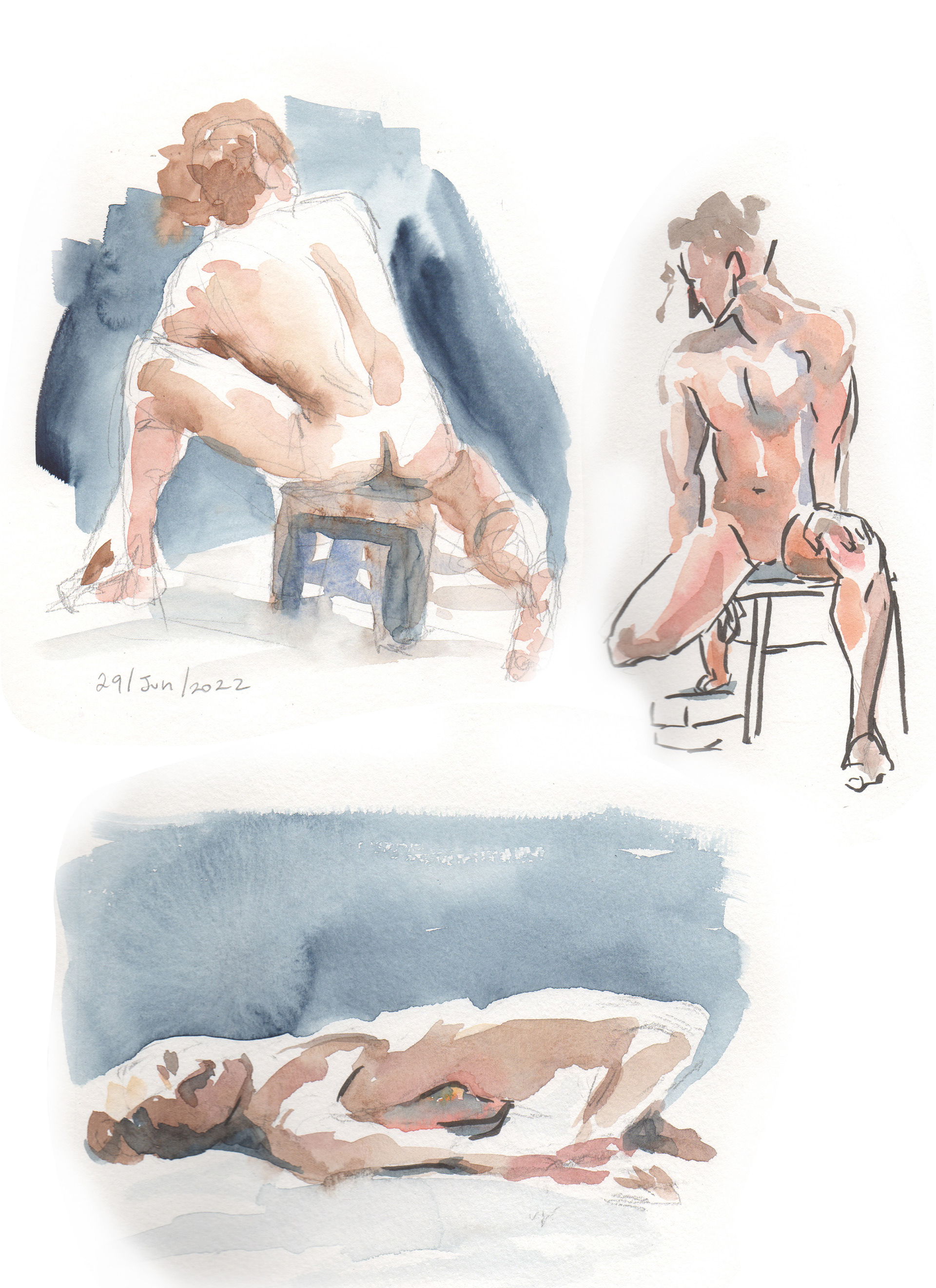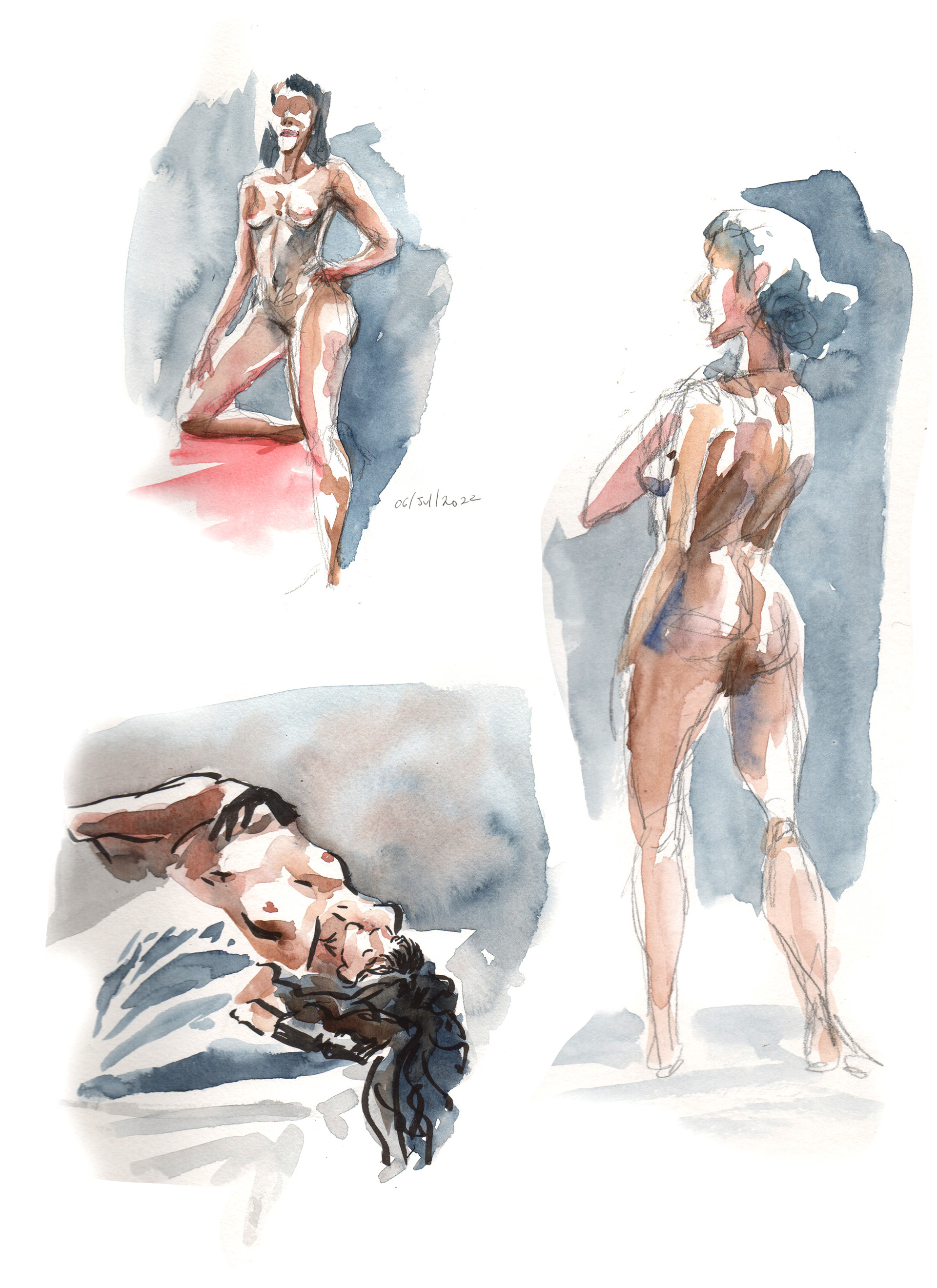 Some of the live drawings I’ve done the Wednesdays , at Berri downtown Montreal, I’m so happy that this kind of activity is back! I’m trying to break a blockage that I have with characters, I really need to practice anatomy to be more confident. 10 and 15 min poses watercolors on Canson sketchbook 5 and 10 min procreate ( my the 1 min and 30s doesn’t I usually do on procreate too but they’re not my bests xD)