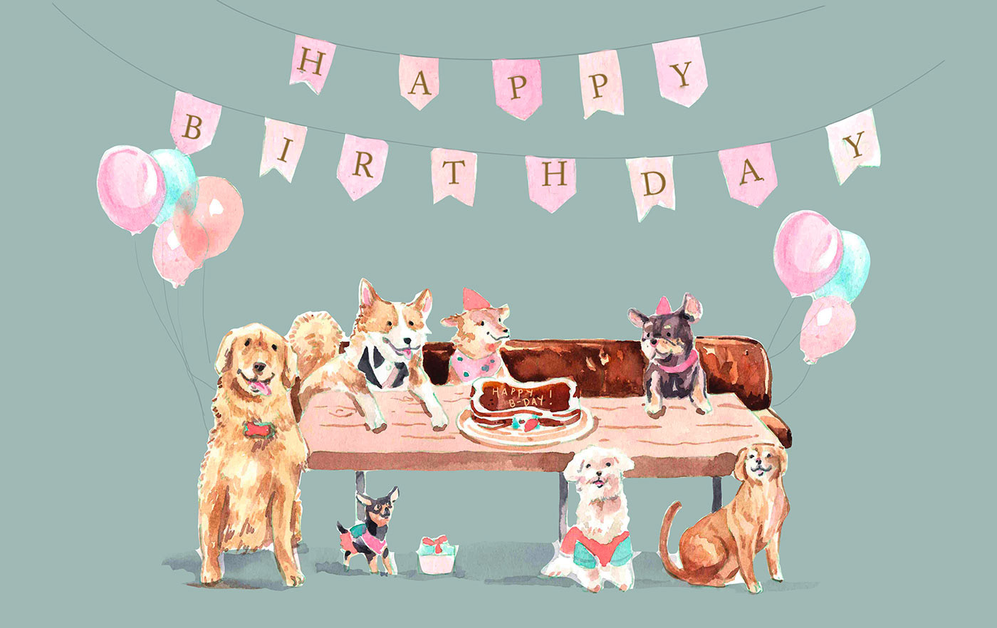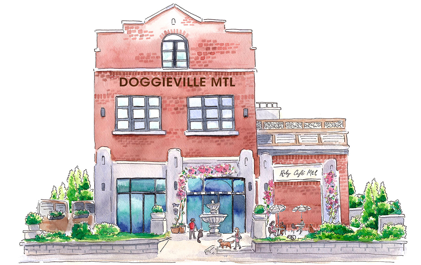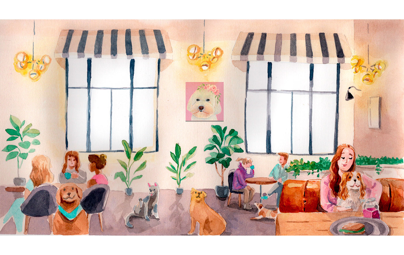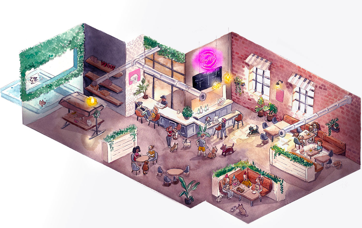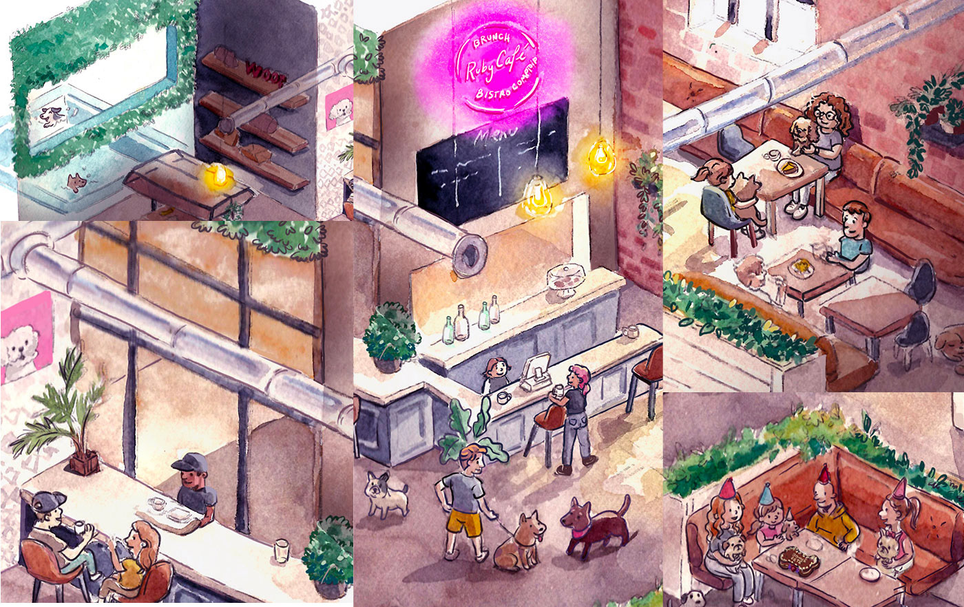 Illustrations for the branding of dog café and hotel: