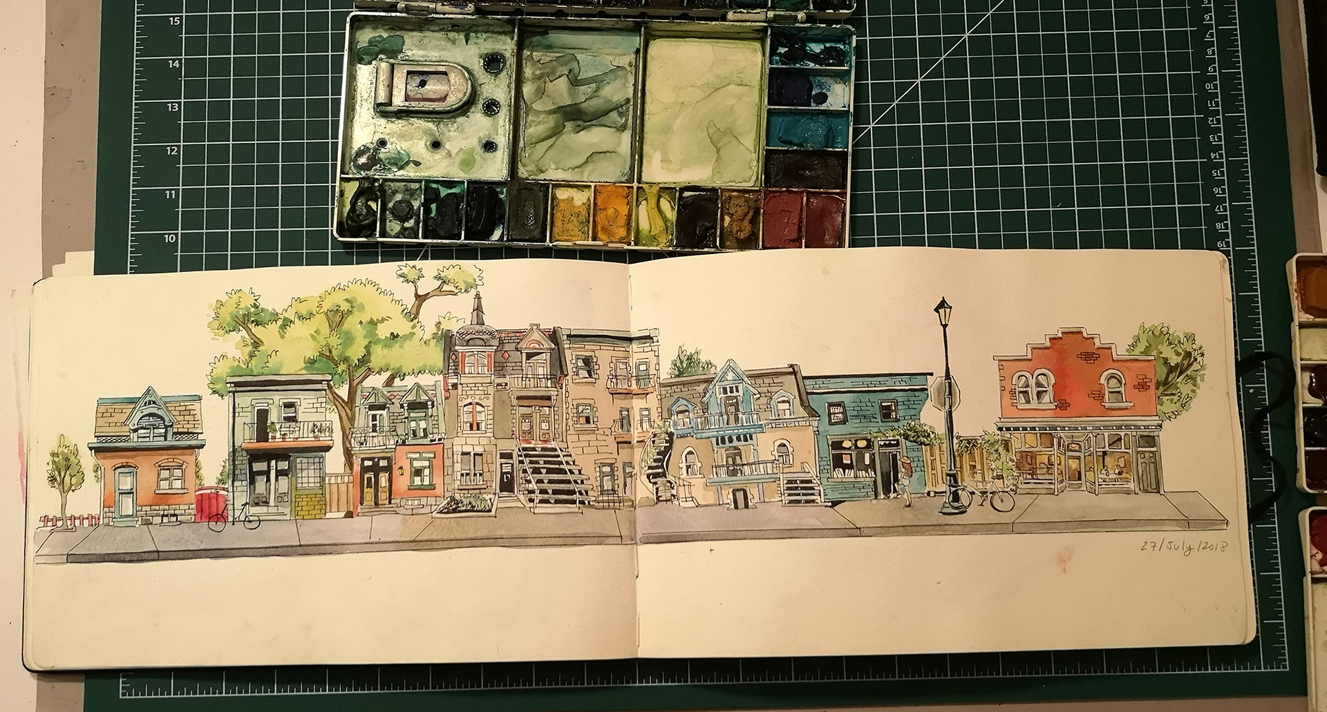 Moleskine Watercolor Album (8 1/4“x23 “ inches), ink, watercolors